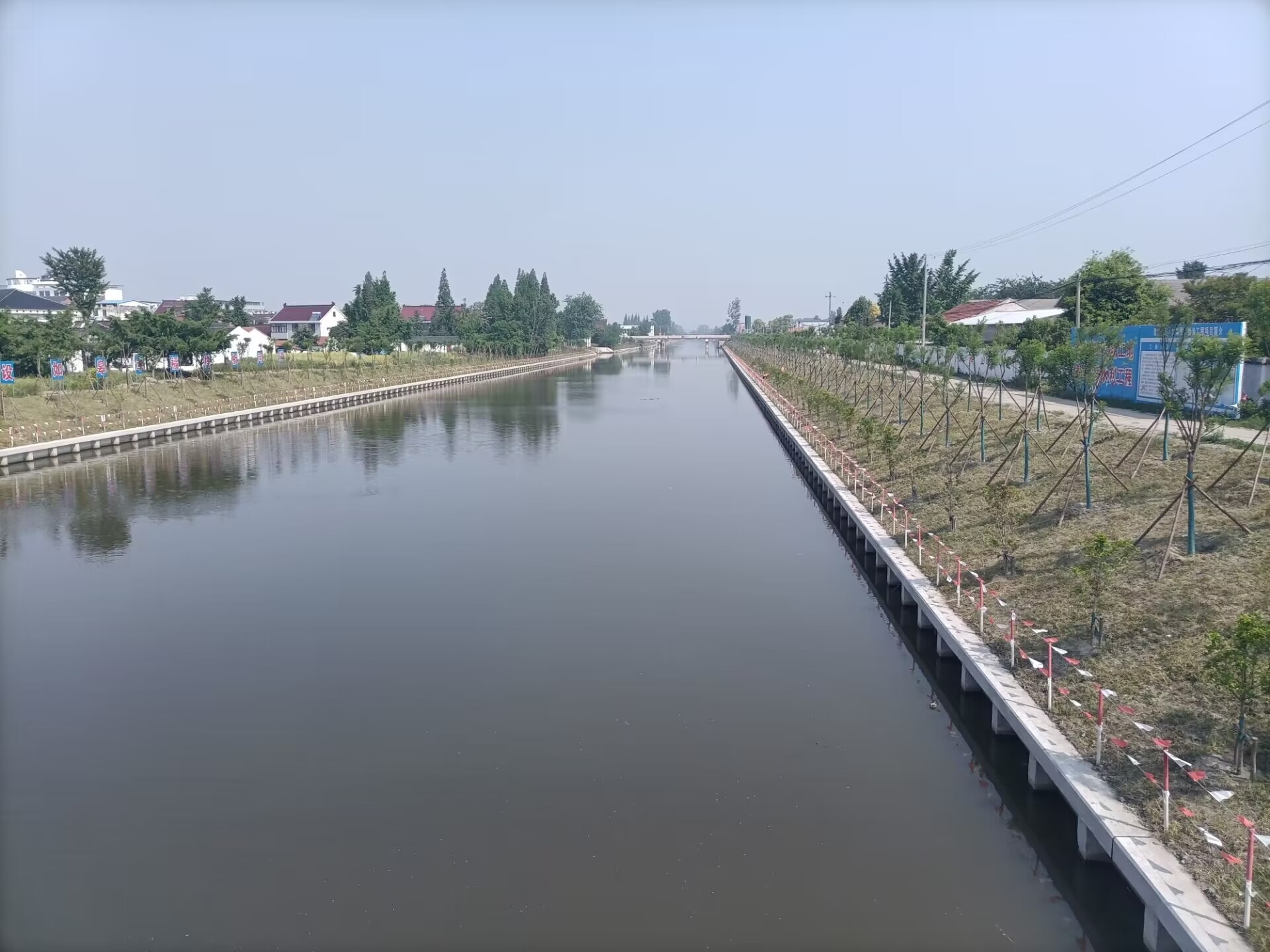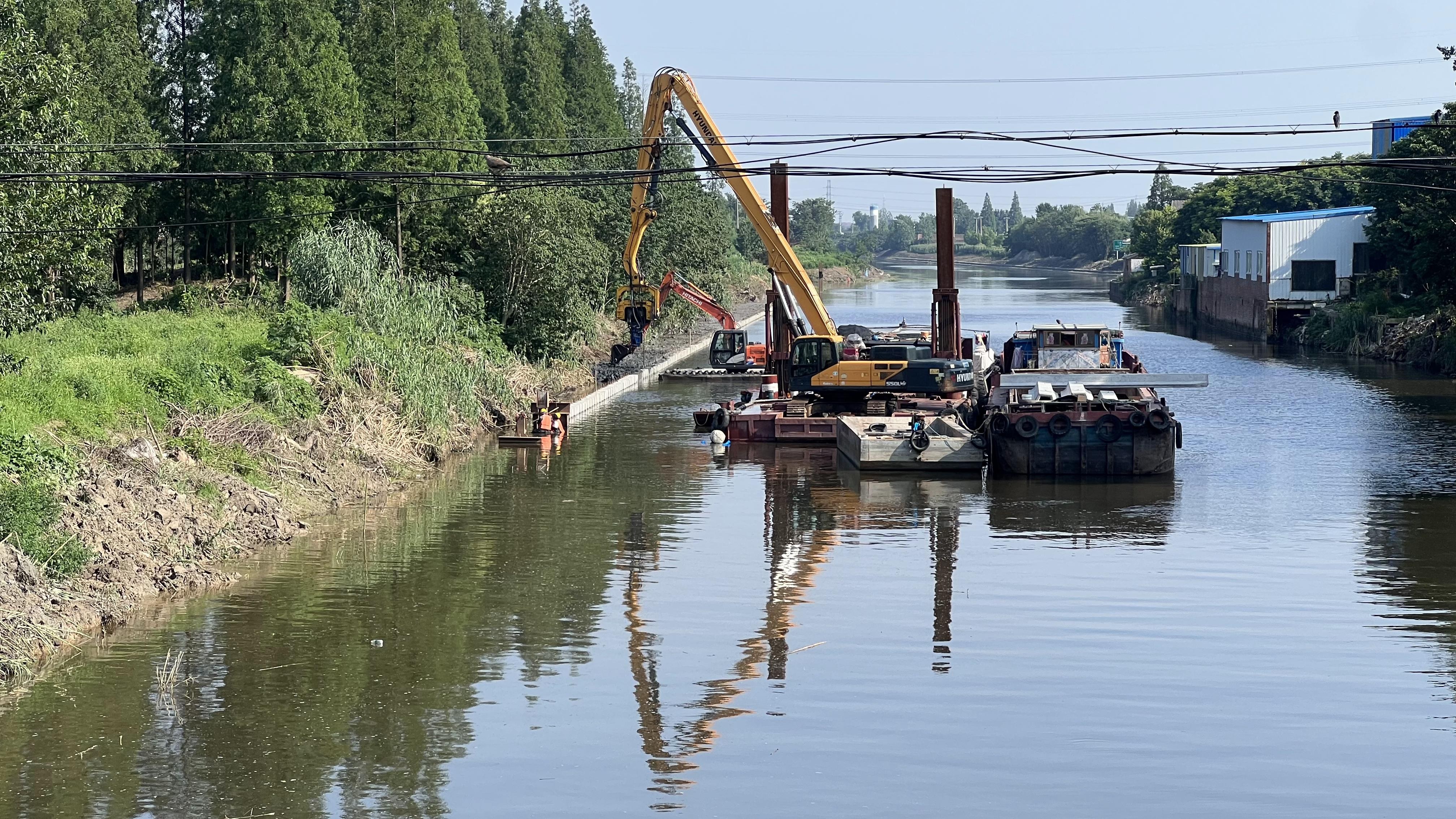通扬运河整治后现场实拍图,护岸采用插板桩