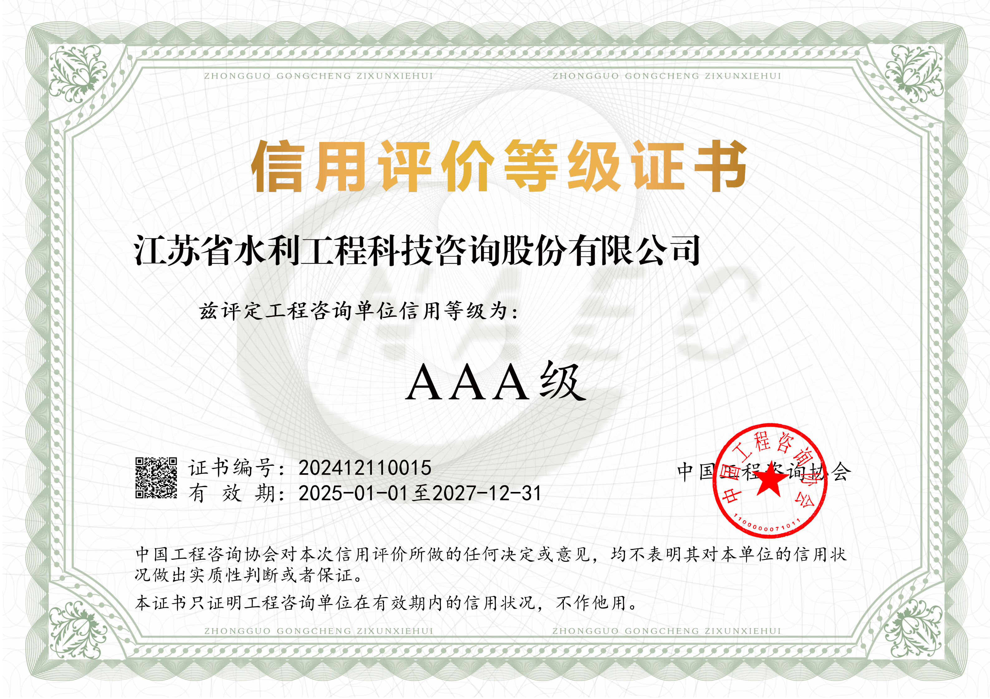 | 喜讯 我司荣获首批“AAA”级信用工程咨询单位作者:admin 来源: 日期:2025-1-21 17:14:31 人气: